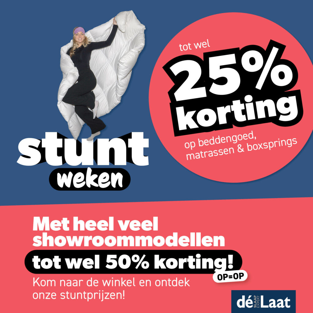 Profiteer nu van de stuntweken in onze winkels! Deze aanbieding is niet te combineren met andere acties of reeds lopende orders. De actie loopt tot en met 11 april 2026. Let op Op=Op!