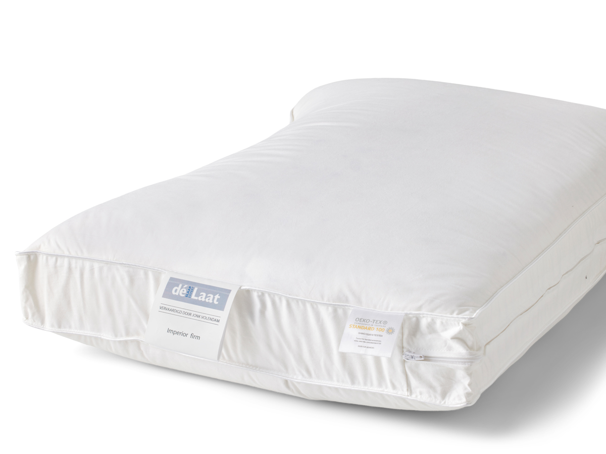 Het Imperior Supreme kussen is een een vormvast kussen dat zacht aanvoelt. De vulling van latex en ganzendons ademt uitstekend, zodat transpiratievocht goed wordt afgevoerd gedurende de nacht. De tijk gemaakt van 100% katoen is uitermate geschikt voor mensen met een allergie voor de huismijt. Het Imperior Supreme kussen is verkrijgbaar in 4 verschillende stramheden. De Imperior Supreme is wasbaar op 60º, maar haal de latex ondersteuning voor het wassen uit het kussen.
