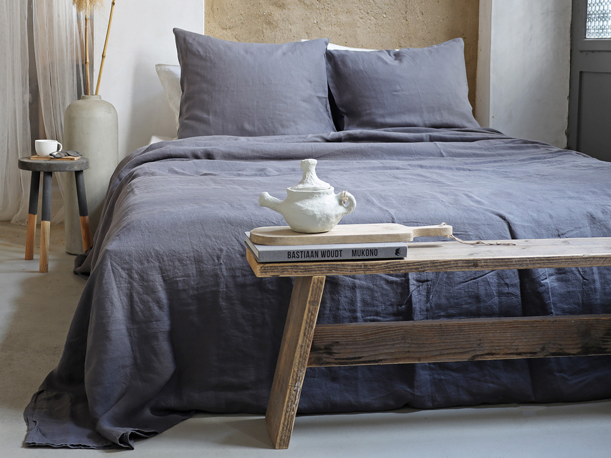 Het dekbedovertrek is gemaakt van 100% gewassen linnen