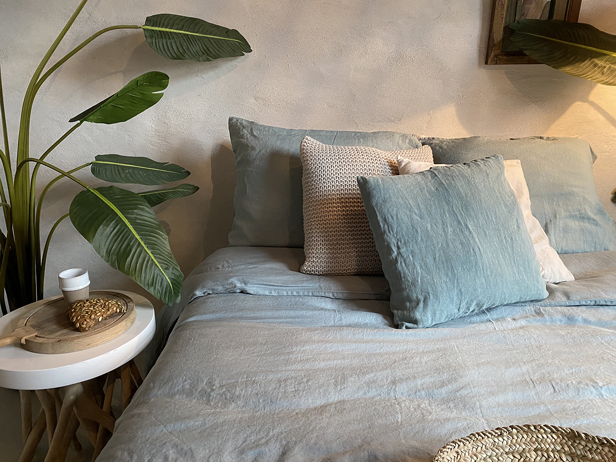 Het dekbedovertrek is gemaakt van 100% gewassen linnen