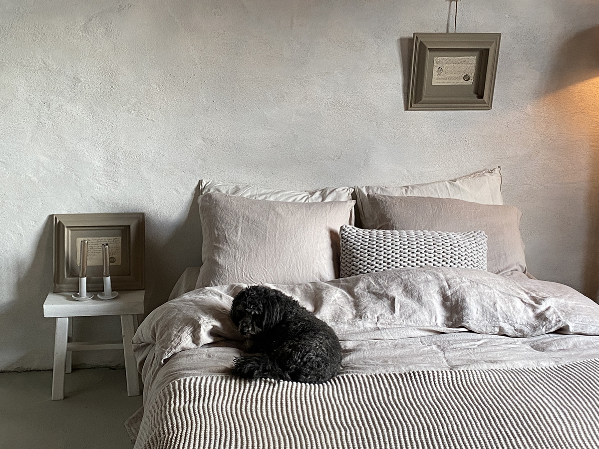 Het dekbedovertrek is gemaakt van 100% gewassen linnen