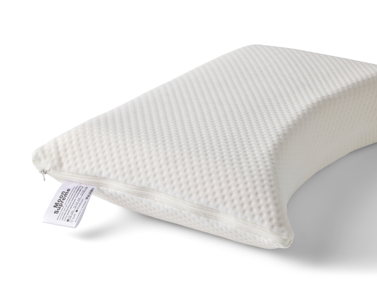 Het Moon Supreme hoofdkussen is gemaakt van natuurrubber, ook wel latex genoemd. Verkrijgbaar in soft, medium en 4 hoogtes, namelijk 9 cm, 12 cm, 14 cm en 16 cm. De schouderuitsparing zorgt voor de juiste ondersteuning in de nek. De Coolmax tijk neemt extra goed vocht op.