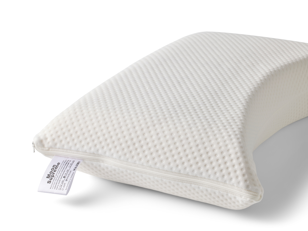Het Moon Supreme hoofdkussen is gemaakt van natuurrubber, ook wel latex genoemd. Verkrijgbaar in soft, medium en 4 hoogtes, namelijk 9 cm, 12 cm, 14 cm en 16 cm. De schouderuitsparing zorgt voor de juiste ondersteuning in de nek. De Coolmax tijk neemt extra goed vocht op.