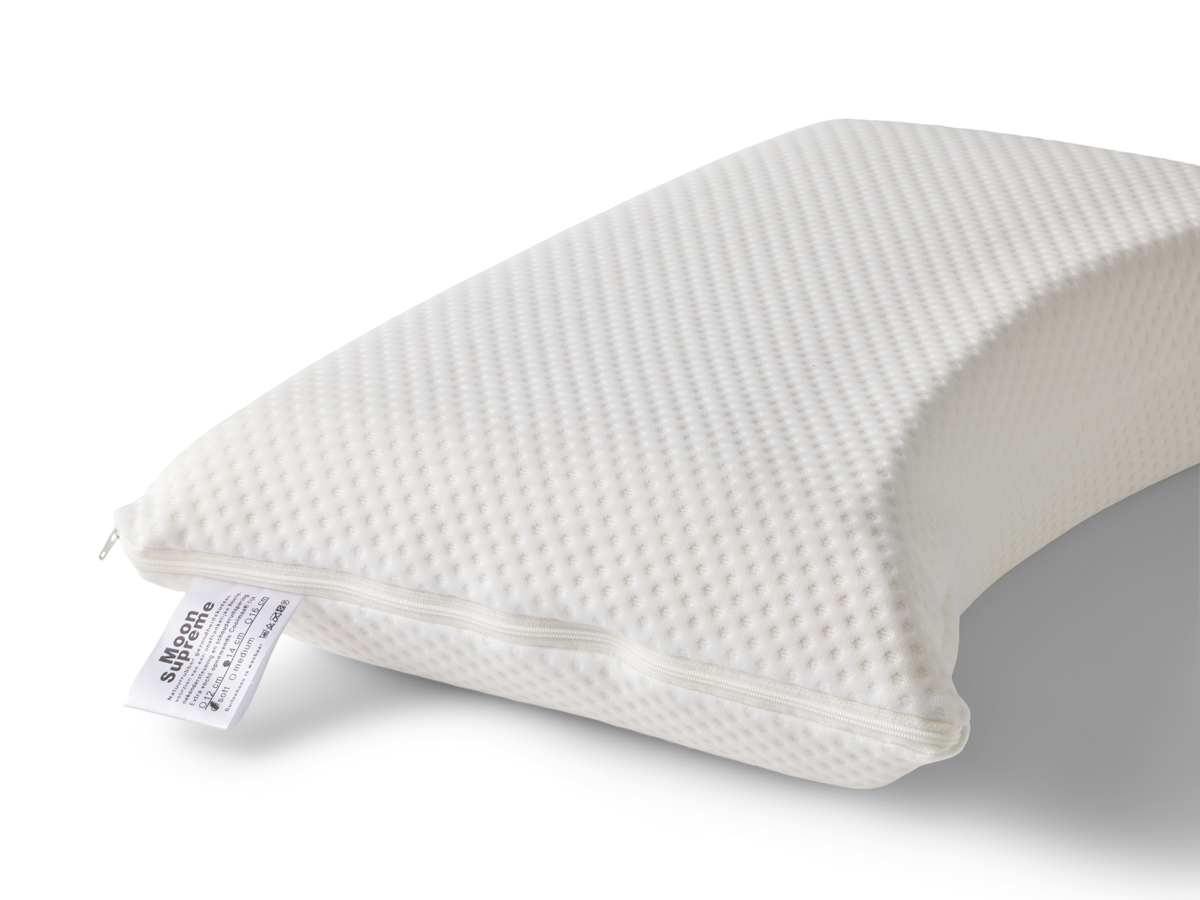 Het Moon Supreme hoofdkussen is gemaakt van natuurrubber, ook wel latex genoemd. Verkrijgbaar in soft, medium en 4 hoogtes, namelijk 9 cm, 12 cm, 14 cm en 16 cm. De schouderuitsparing zorgt voor de juiste ondersteuning in de nek. De Coolmax tijk neemt extra goed vocht op.
