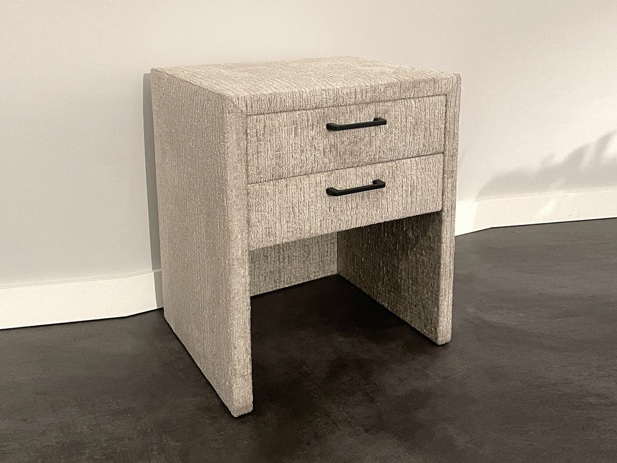 Het gestoffeerde nachtkastje Timeless met 2 lades is verkrijgbaar in alle stoffen uit de Norma Timeless collectie.