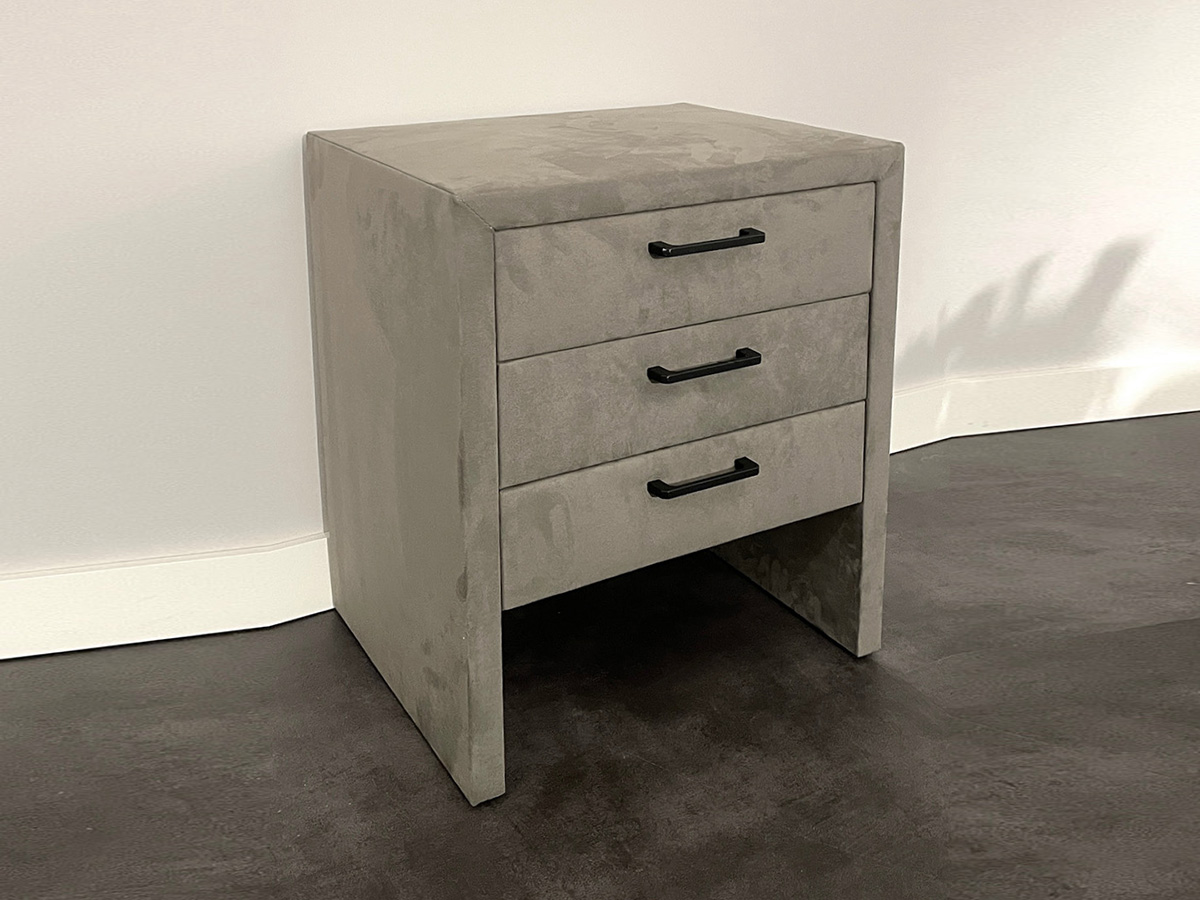 Het gestoffeerde nachtkastje Timeless met 3 laden is verkrijgbaar in alle stoffen uit de Norma Timeless collectie.