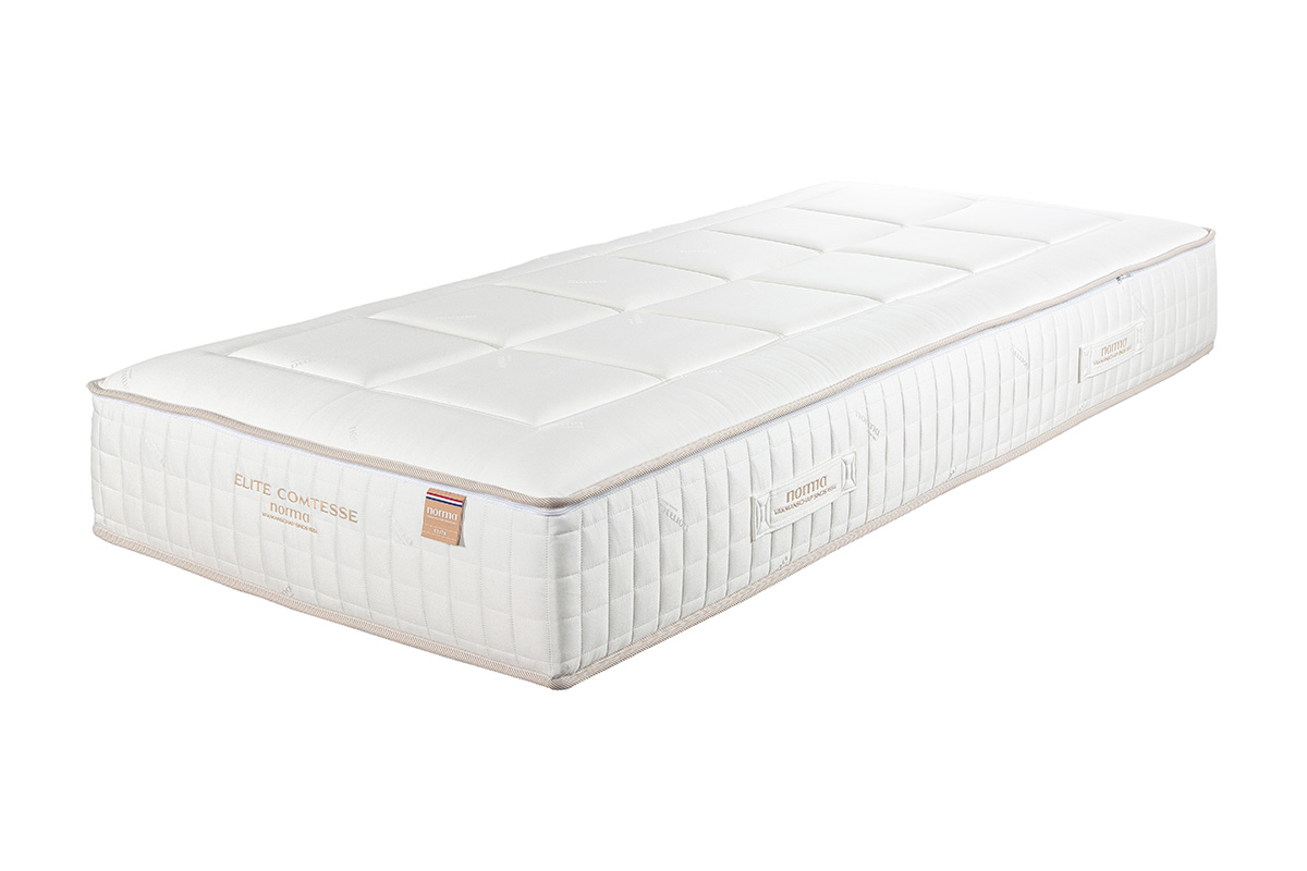 Het Norma Comtesse matras biedt optimale ondersteuning met een pocketveren kern van meer dan 700 veren, dubbel thermisch gehard en progressief. De 5 cm dikke Perfo Latex Nature laag zorgt voor extra comfort. Verkrijgbaar in Medium en Firm, met een totale hoogte van ca. 26 cm. De hoes is doorgestikt met hypersoft foam en voorzien van handvatten, terwijl de polyvent in de tijk en de 3D-mesh onderzijde zorgen voor uitstekende ventilatie. De matras is eenzijdig beslaapbaar en hoeft niet gekeerd te worden.