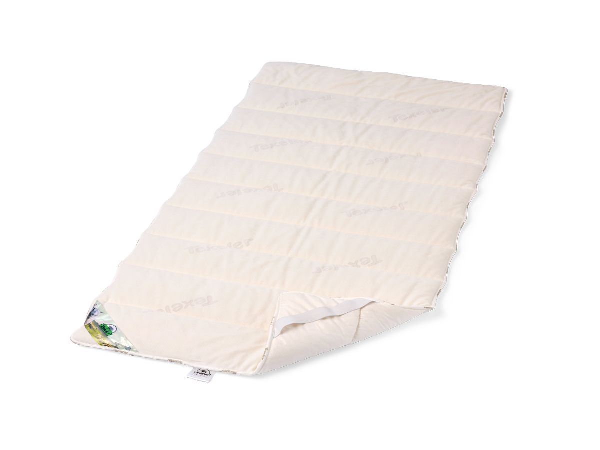 Het Texeler Onderdeken VolWol velours maakt je matras compleet en is aan twee zijden slaapbaar. Het onderdeken is gevuld met c.a. 1000gr/m2 wol voor een extra bedgevoel. De boventijk is voorzien van zacht badstof. De ondertijk is gemaakt van 100% perkal katoen. Het onderdeken neemt transpiratievocht zonder moeite op wat ervoor zorgt dat het bed zacht en droog aanvoelt. Het onderdeken is te bevestigen met 4 hoekelastieken.