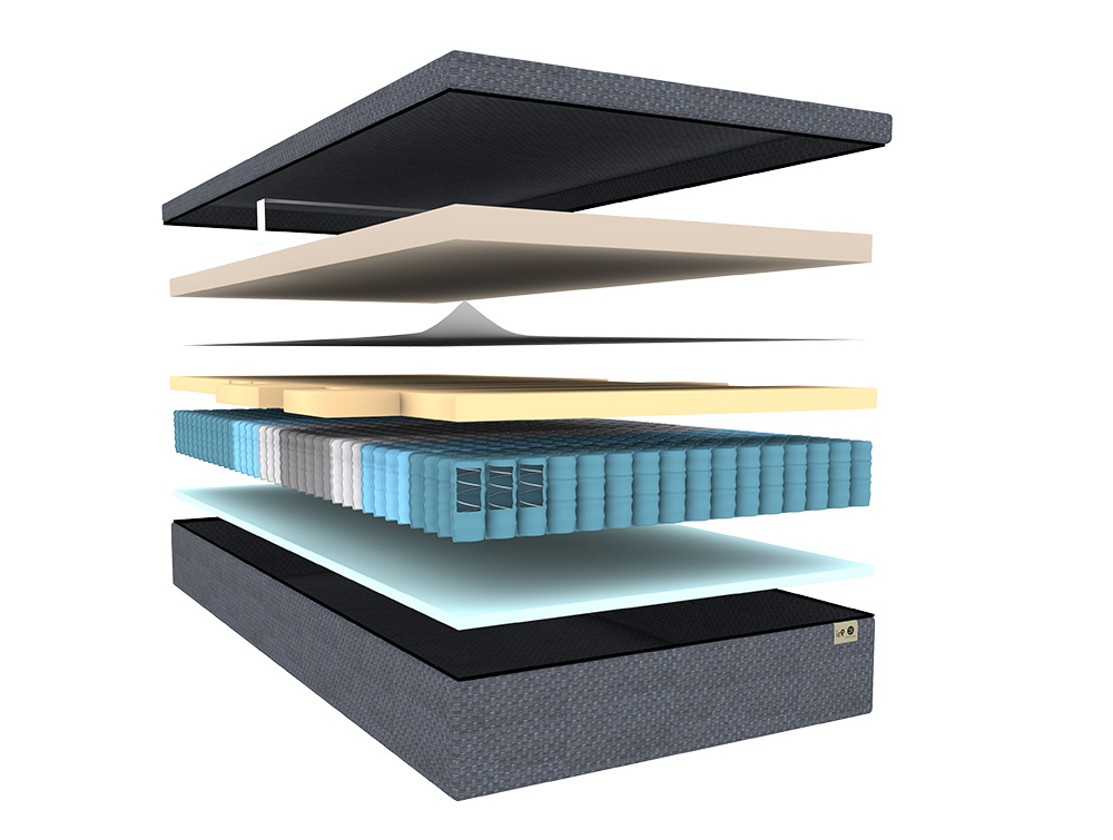 Het aanpasbare matras van Van Cadsand bestaat uit verschillende lagen. De verschillende lagen worden afgestemd op uw slaapbehoeften en is naar keuze aan te passen. De verwisselbare elementen kunnen worden aangepast op cruciale punten zoals de schouders en heupen. Er is keuze uit diverse premium materialen voor de bovenlaag van het matras.